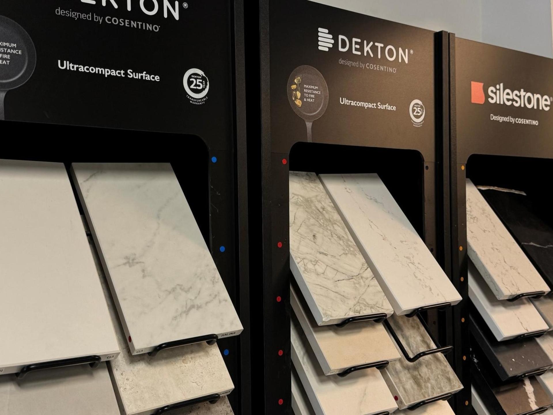 Une matériauthèque complète : façades, poignées, plans de travail, crédences ;