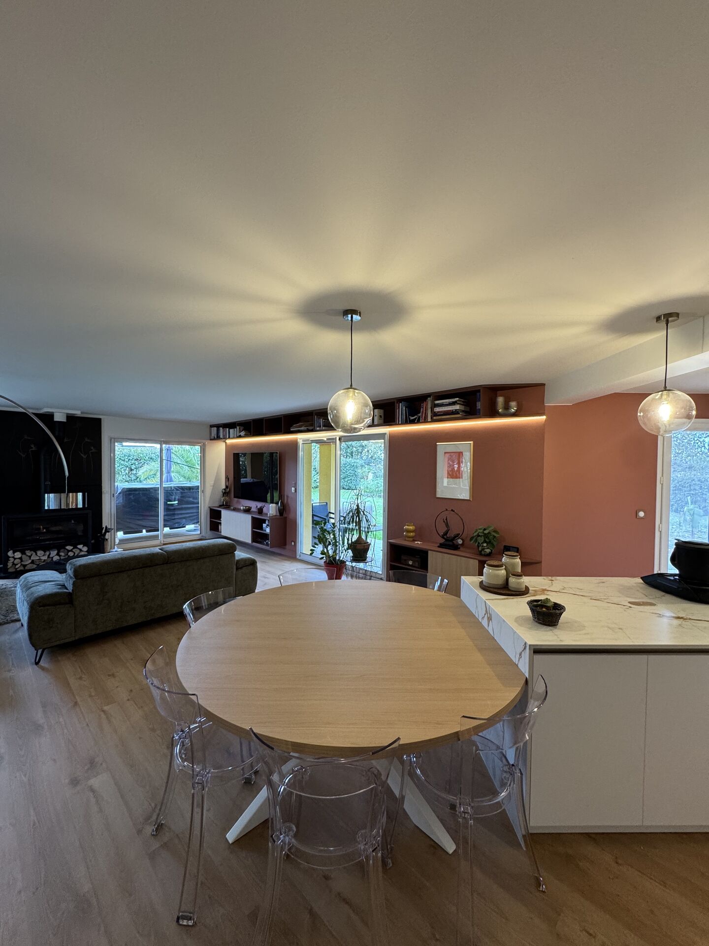 Cette réalisation présente une bibliothèque sur mesure et un meuble TV conçus pour un salon à Fonsorbes, alliant design contemporain et fonctionnalité. L’ensemble structure l’espace de vie tout en apportant une ambiance chaleureuse et élégante. Réalisés en mélaminé mat de la marque Armony, dans le...