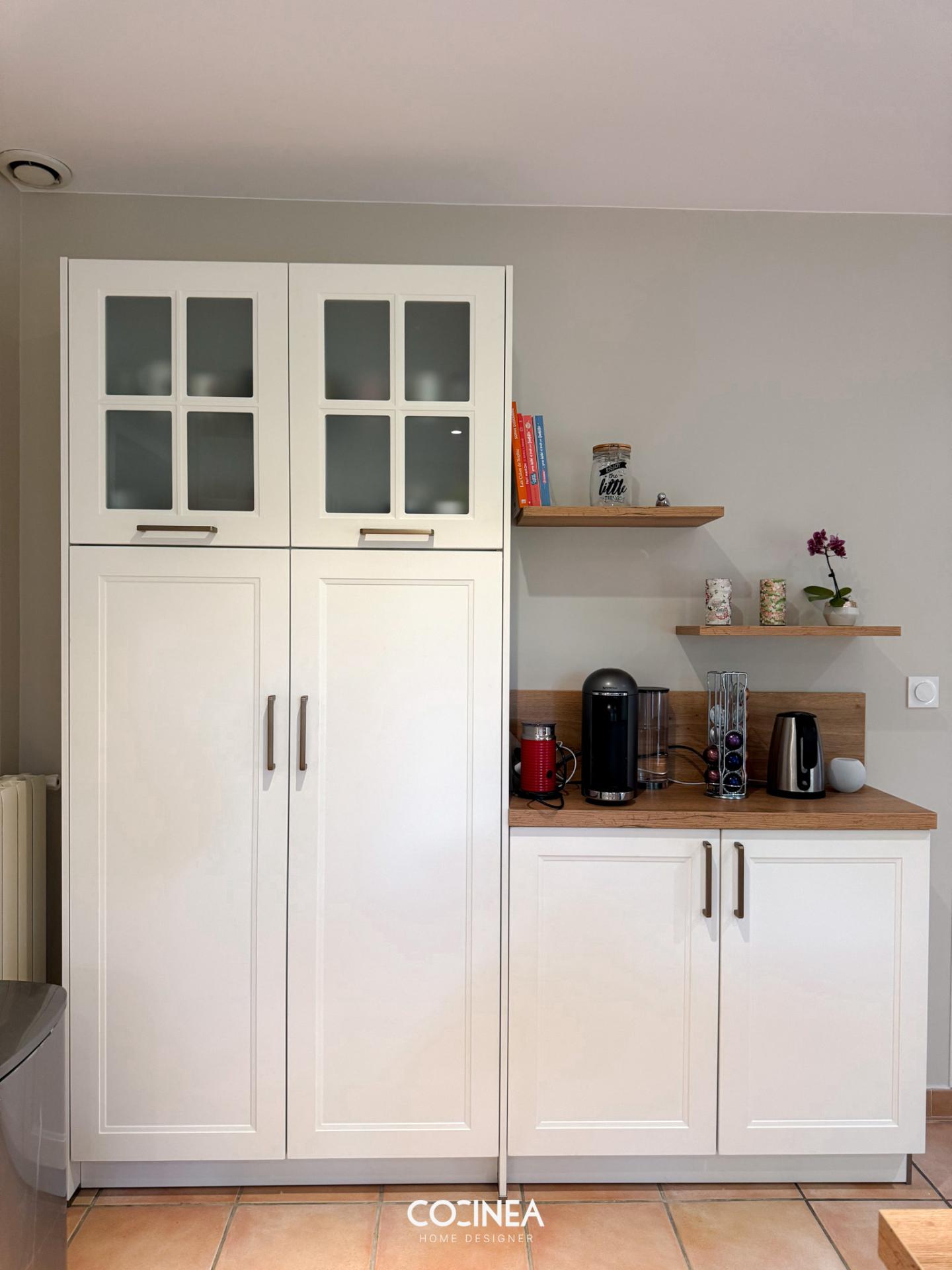 Dans cette conception réalisée à Pibrac (31), nous avons imaginé une cuisine HÄCKER RAVEN RAVENNA au design élégant et intemporel. Les façades en blanc laminé laqué ultra-mat et le plan de travail en stratifié chêne antique naturel apportent une ambiance chaleureuse, alliant modernité et authenticité.