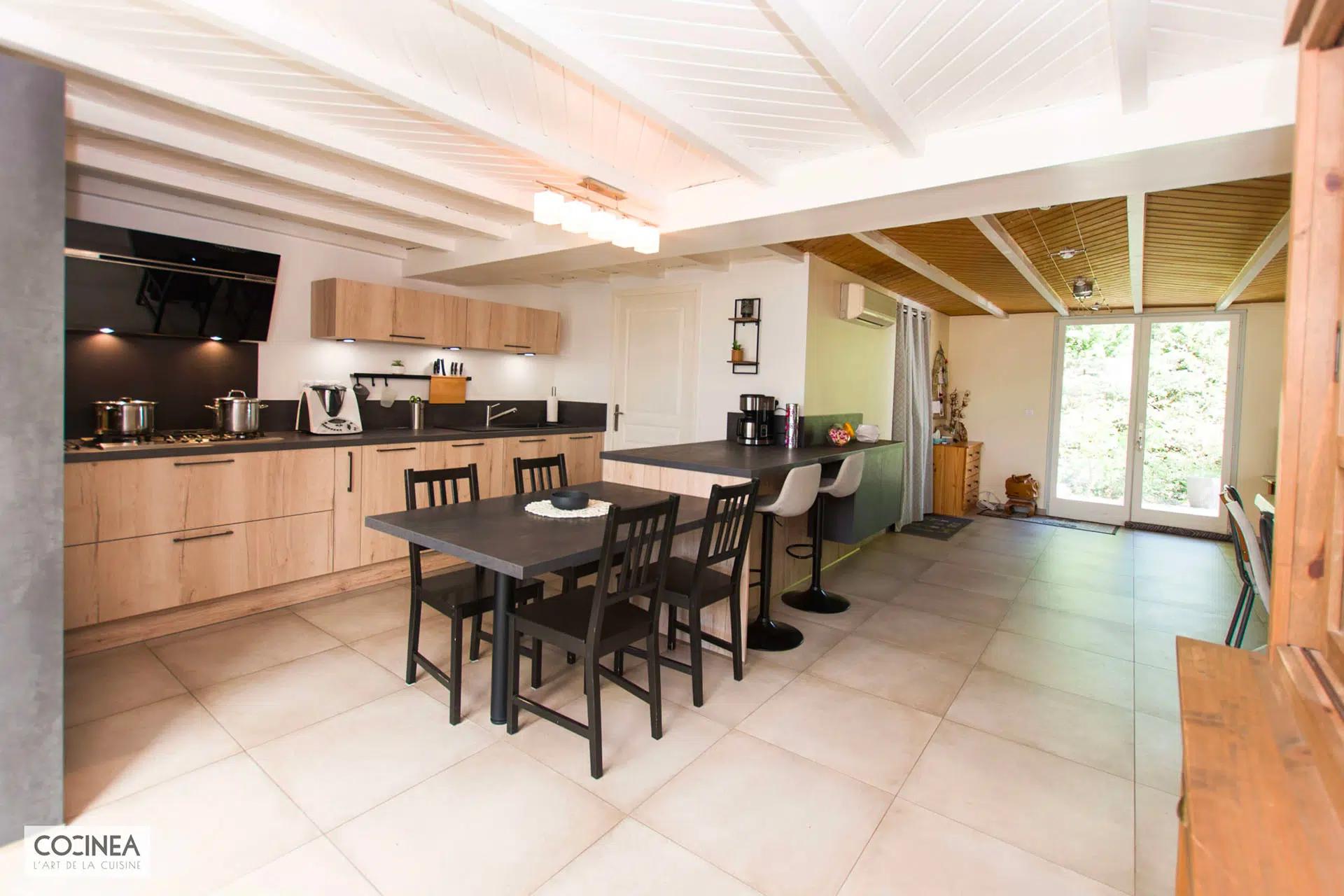 Cocinea vous présente une cuisine réalisée en décembre 2020 et installée dans la ville de Monbrun à la frontière du Gers, conçue par le responsable Mathieu Thouron. Cet espace lumineux et spacieux, apporte à cette cuisine un cachet exceptionnel notamment grâce aux portes apparentes et une peinture...